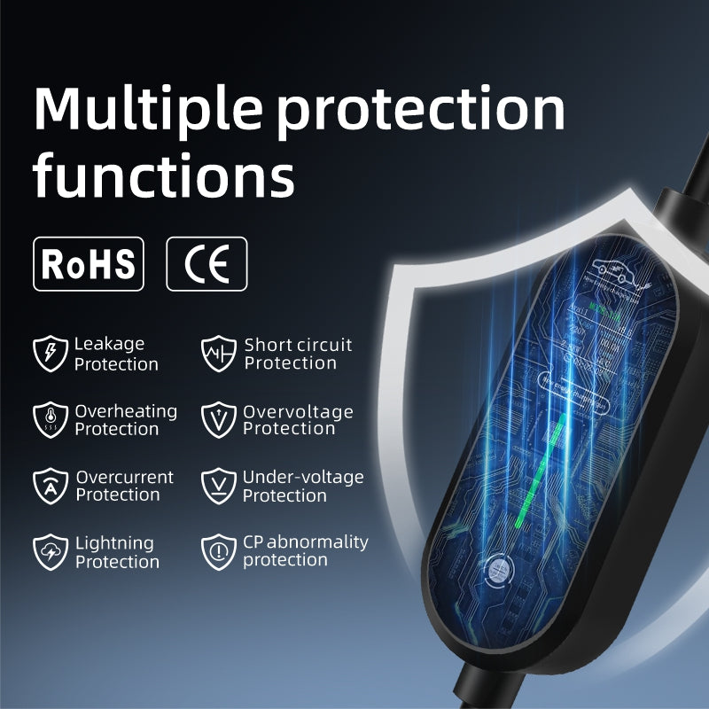 To ensure safety across different electrical environments, the charging current can be manually toggled between 8A, 10A, 13A, and 16A.